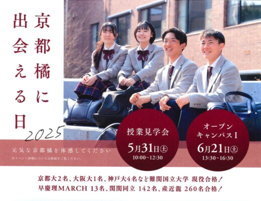 京都橘中学校は21世紀を担うグローバル市民として活躍できるよういのちとこころを大切にし、かけがえのない自分と他者を認め、お互いに支え合って日々の生活を送る人間を育成していきます。
