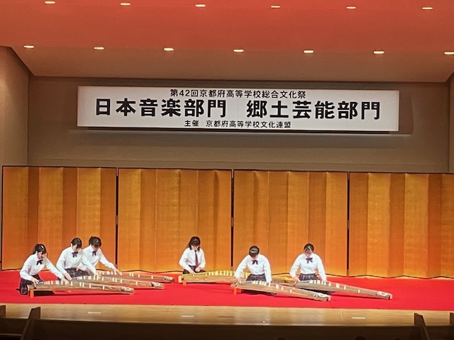 2025/11/05クラブ活動 琴部・京総文に参加 11月2日(日)京都市東部文化会館で行われた令和7年度第42回京都府高等学校総合文化祭の日本音楽部門に本校の琴部が参加しました。 緊張した面持ちで登壇しましたが、琴の調べを響かせ、演奏後には安堵の笑みを浮かべていました。