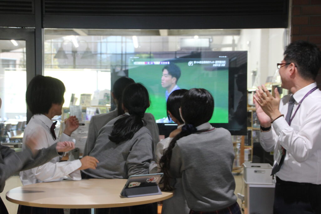 また、校内でも中継を見ながら応援をする生徒の姿も見られました。
