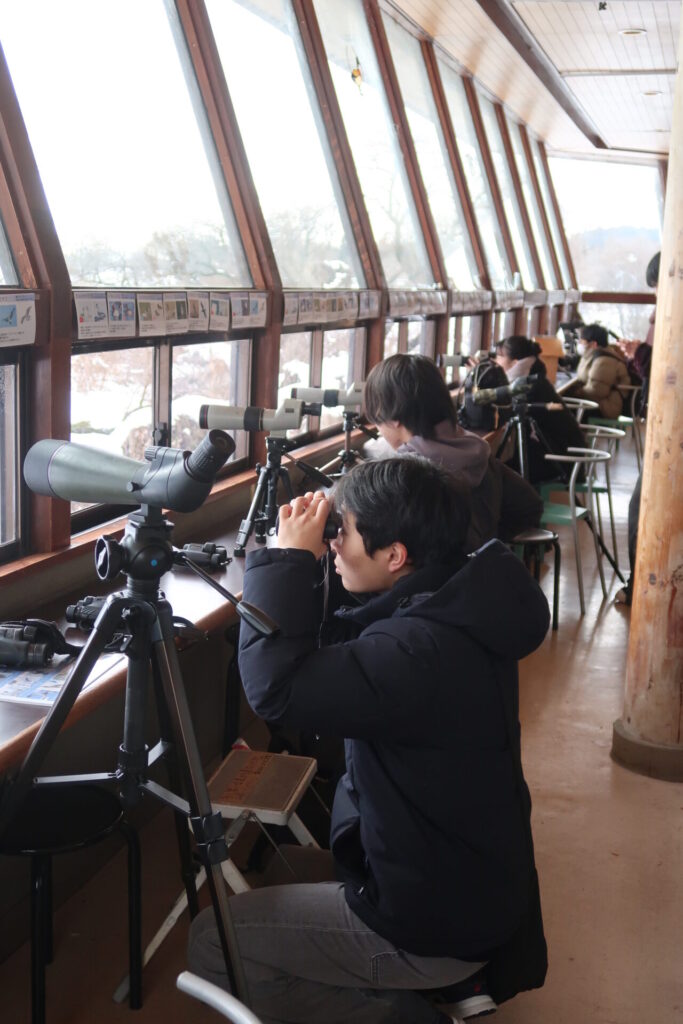 また、センター内では望遠鏡を使い、湖上に浮かぶ水鳥の姿をじっくりと観察しました。遠く離れた場所でたくましく生きる鳥たちの姿は、部員にとって新鮮な驚きと学びに満ちていました。 今回の活動を通して、部員たちは「何気なく見ていた鳥たち」に新たな視点を持ち、自然の豊かさや命の営みをより深く感じ取ることができました。