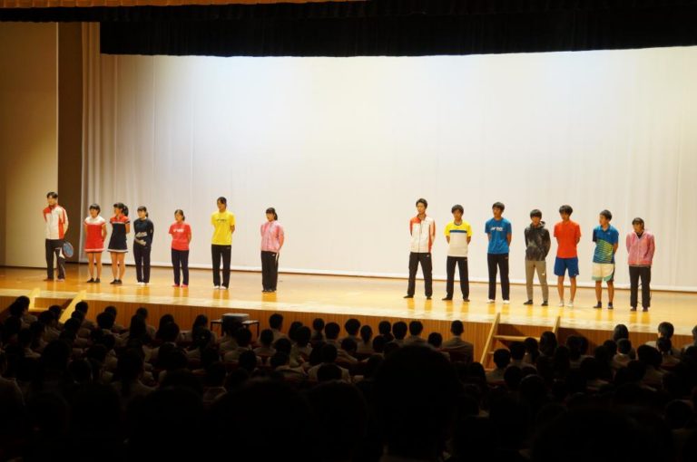 会の後半は体育系クラブのファッションショーと活動の紹介です。剣道部と中学陸上競技部。