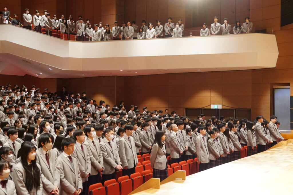 12月17日(水)中学生は教室でZoomを繋いで、高校生はホールで2学期終業式を行いました。