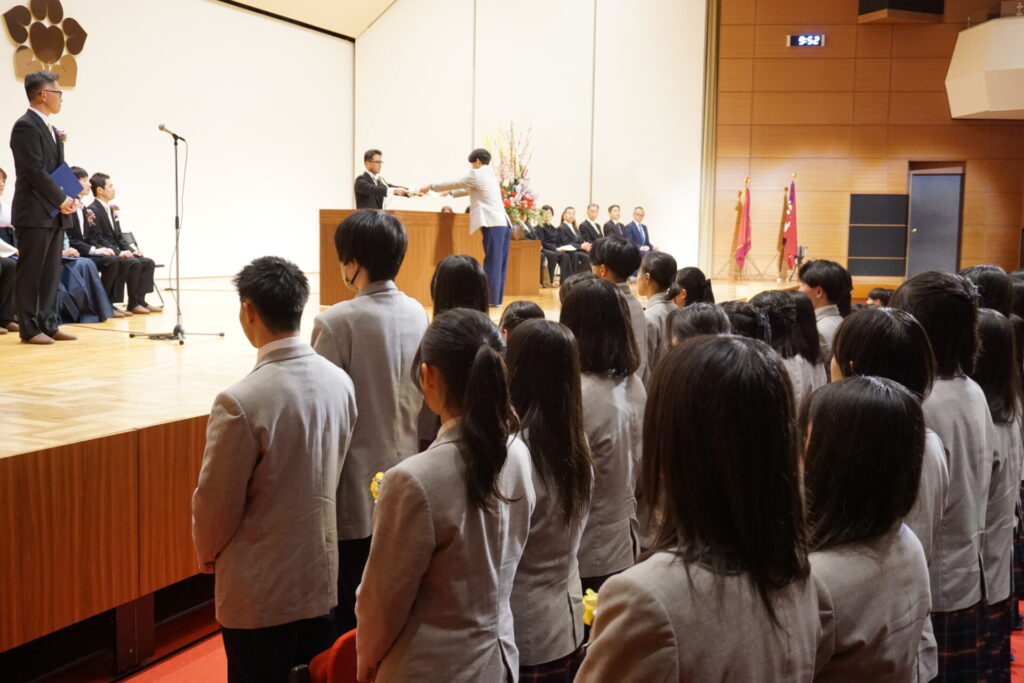 ライト兄弟や大谷選手の例を引きつつ、エビデンスがないからやらないのではなく、進む覚悟を持って小さくても一歩を踏み出してほしい、との校長からの式辞がありました。また、来賓からのお祝いのお言葉、在校生代表の送辞に続き、卒業生代表の答辞では、家族や教職員、そして仲間への感謝と新しいステージへの決意が述べられました。
