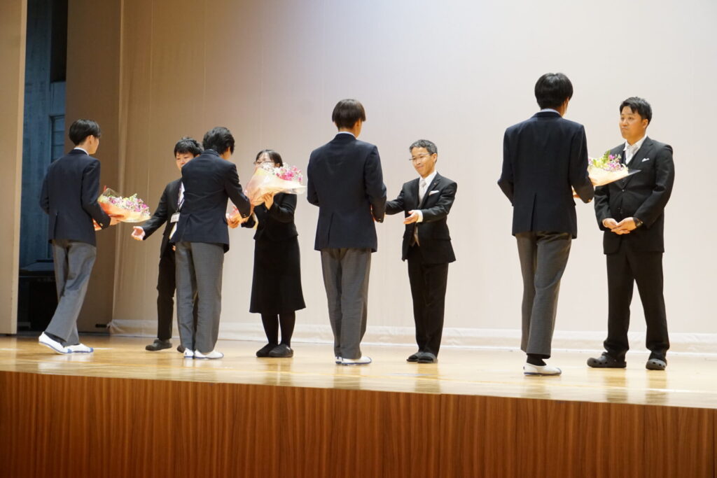 また、卒業を祝う会では卒業生から担任への花束贈呈がありました。