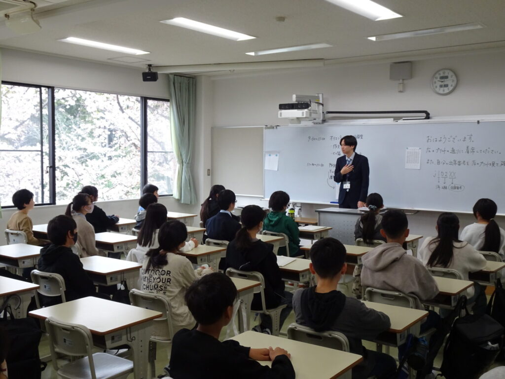 2026/04/05行事・イベント 新入生登校日 4月4日(土)中高とも新入生登校日がありました。 高校1年生は初めて学年全員がホールに一堂に会しました。 中学1年生は担任から中学生としての心構えの話があったり、少人数のグループで靴箱や傘立ての使い方を習ったりしました。