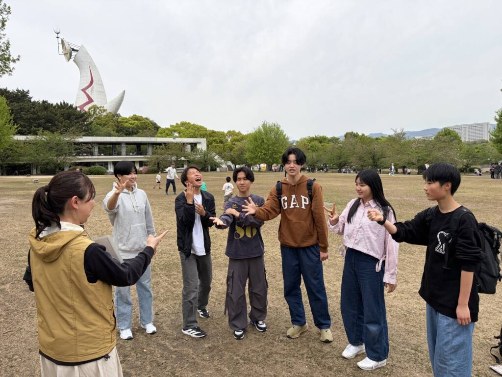 2026/04/23行事・イベント 高1・校外学習 4月17日(金)高校1年は校外学習で吹田市の万博記念公園に行きました。 リアル宝探しでは仲間と協力して一番をめざしました。 入学してから初めての学年全員そしてクラスメイトと楽しむ行事です。レクレーションを通じて仲を深めました。