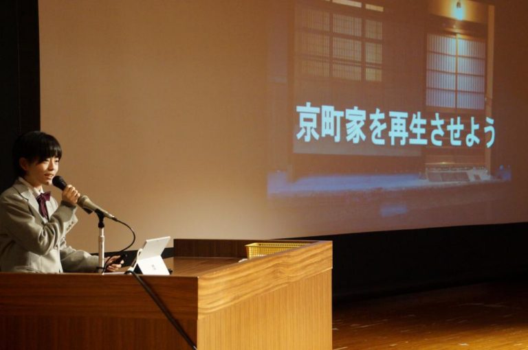 2019/03/19学習・進路指導 総合学習報告会 3月16日(土)修了式後、高校1・2年Eコース生が1年間かけ総合学習の時間「自立と共生」(探究)の学習の成果を報告しました。1年生はクエスト(企業から与えられた課題を解決するための新たな商品の提案をする)、2年生はエナジード(社会問題を見つけ、改善方法を提案する)に取り組みました。 1年生はチームで試行錯誤を重ねながら完成させたプランを、クラス予選を経た代表が力強くプレゼンテーションしていました。 2年生は各々が1年かけて問題解決策を考えてきました。こちらもそれぞれのクラスから選ばれた代表が地元・京都に焦点を当て、解決可能な具体策を示していました。