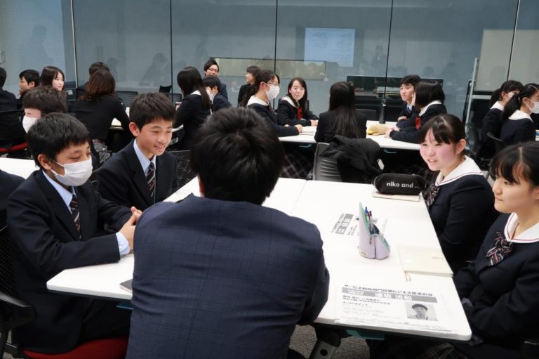 2020/01/26学習・進路指導 中2・企業見学 1月21日(火)中学2年生が総合的な学習の時間の授業の一環としてNTT西日本を訪問しました。 見学の後、社員の方々と交流会を持ちました。 生徒たちは最初は緊張していましたが、あたたかく出迎えてくださり、また、仕事について楽しそうに語られる姿を見て、どんどん質問することができました。「ただ便利なものを作るだけではなく、変えていきたい未来のビジョンに基づいて働くこと」「今夢がなくても夢を作っていけばいい」などのアドバイスを受け、大いに感動して帰校しました。