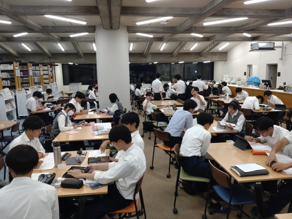 ブラウジングコーナーや図書館等校内各所では下校時間まで勉強に励む姿が見られます。