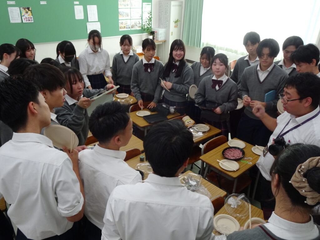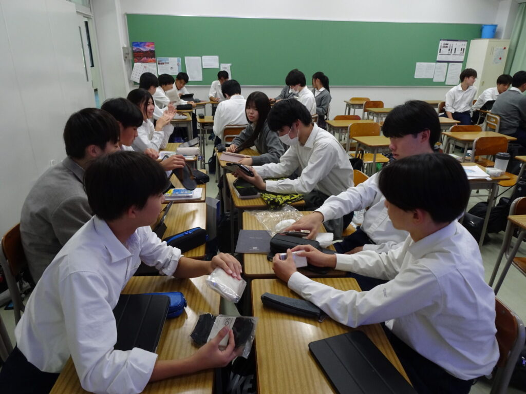 10月23日(木)高校1年生は3月実施予定の研修旅行でお世話になる事業家様からサンプルをいただき、分析をしました。