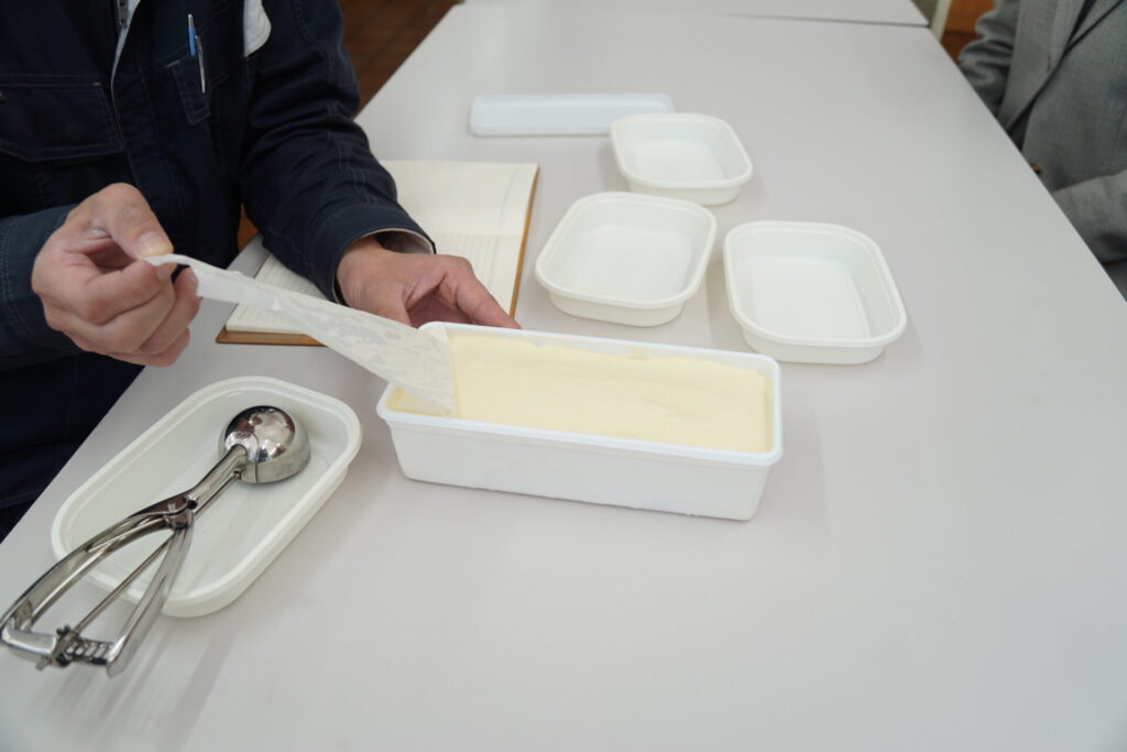 米から作るアイスクリームを考え企業様に提案していたところ、この度、コストや味など商品として完成度の高まったものを持ってきてくださり、今回試食させていただきました。