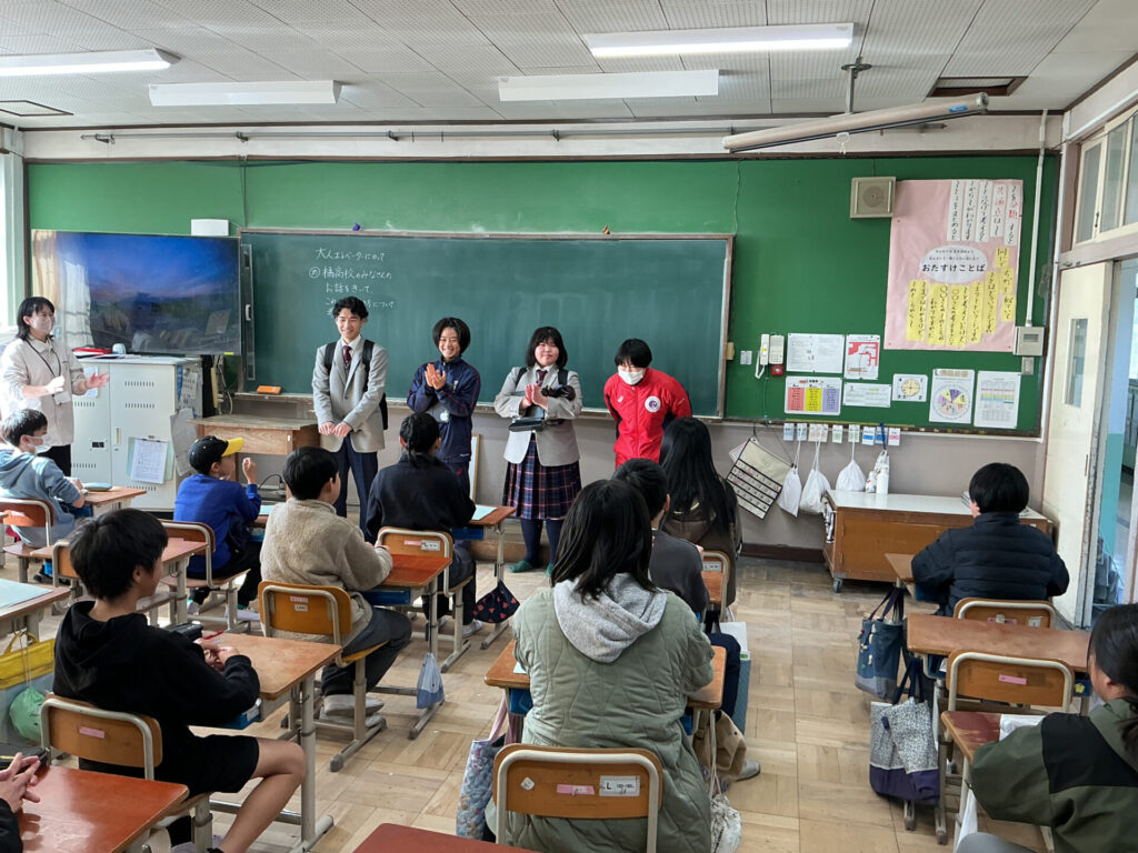 1月19日(月)本校からすぐご近所の桃山小学校の総合的な学習の時間で「高校生に話を聞こう」企画があり、本校生が参加をしました。