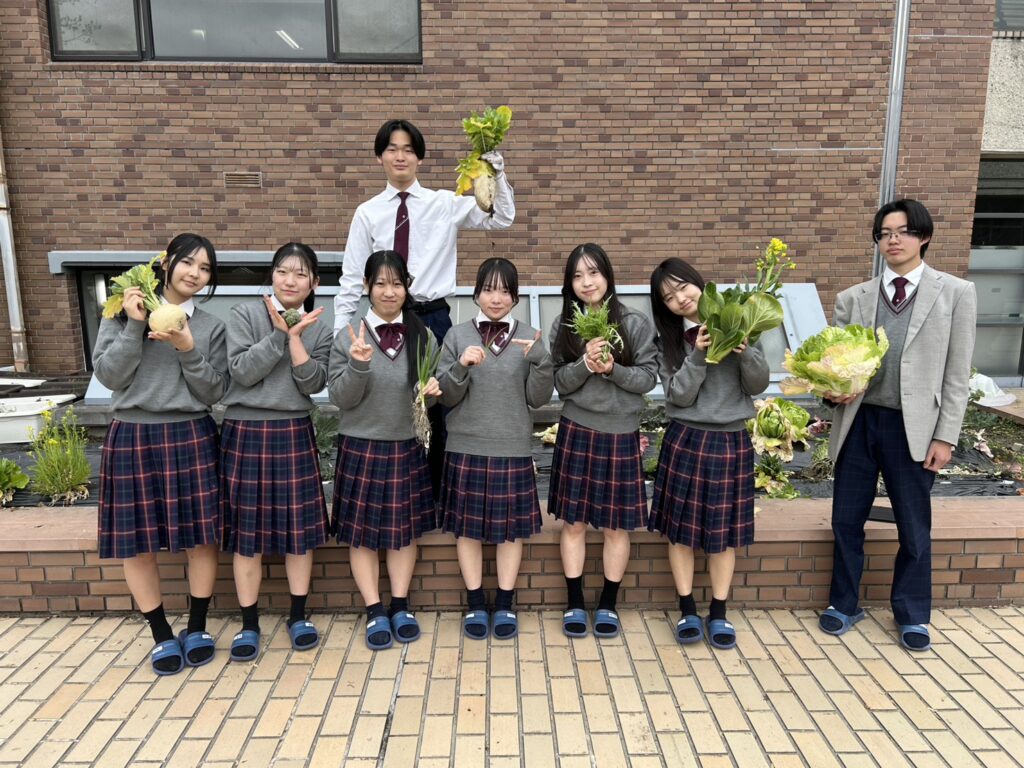 2026/02/27学習・進路指導 高3・野菜収穫 2月26日(木)高校3年私大クラスで生物を選択している生徒が、授業で育てた野菜を収穫しました。 大根や白菜などが中庭で大きく育ちました。 その後、全員で調理をしておいしくいただきました。
