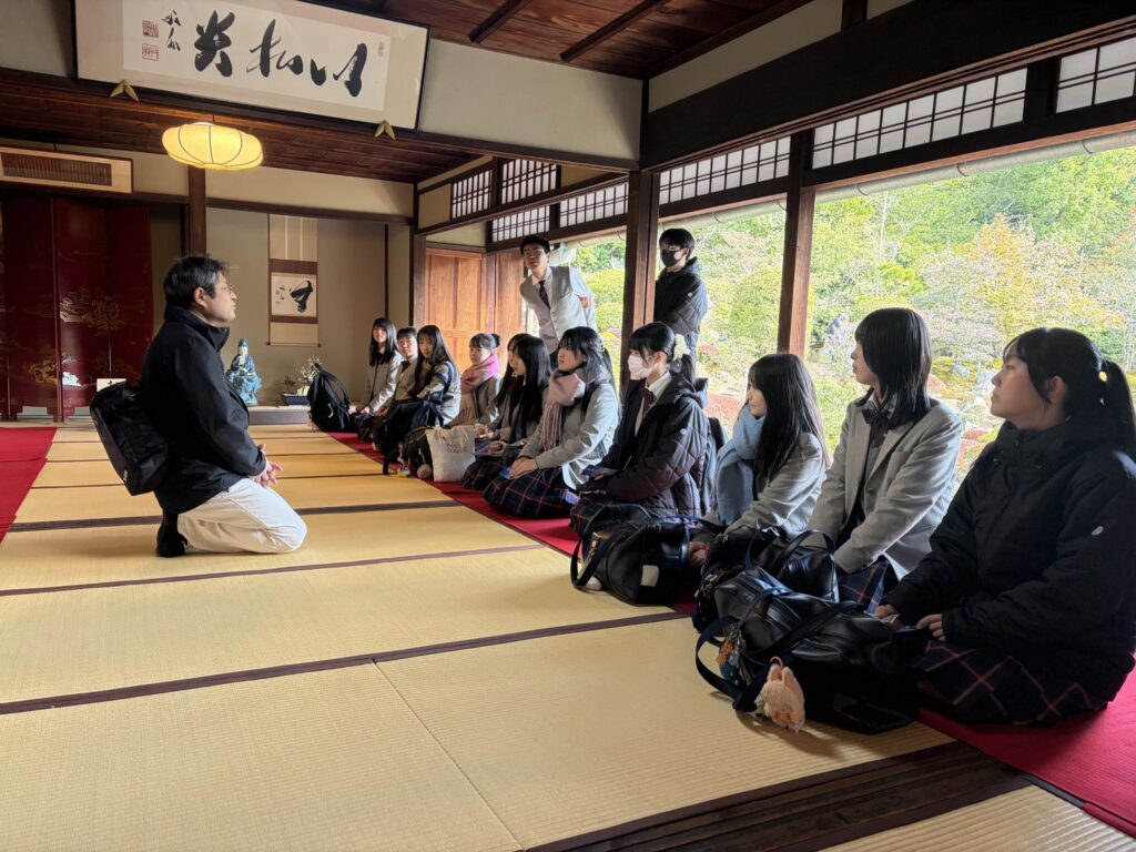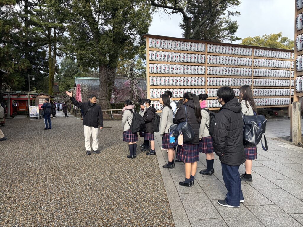 2026/03/13学習・進路指導 高2・日本史探訪 高校2年1組の文系の生徒を中心に、3月4日(水)京都市上京区の神社仏閣を訪れました。 北野天満宮や平野神社、等持院、龍安寺を巡りました。 それぞれの歴史や建築について理解をふかめました。