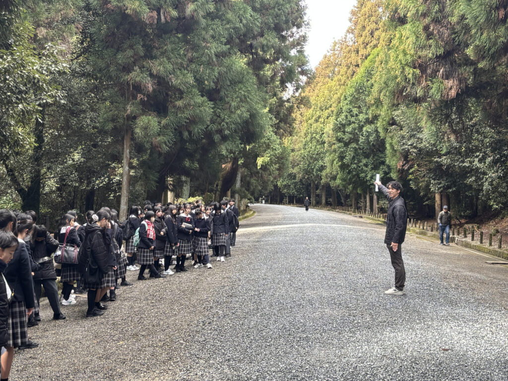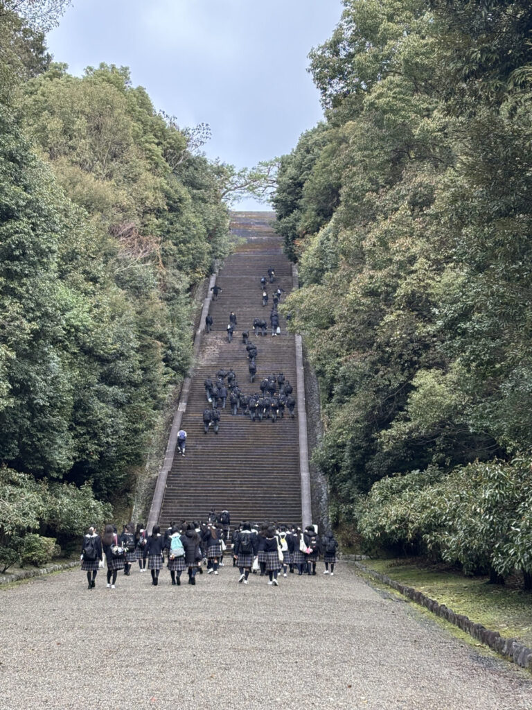 2026/03/18学習・進路指導 中1・社会科フィールドワーク 3月4日(水)中学1年生が桃山御陵に行きました。 坂道と階段を上っていくと、学校周辺をよく見渡せます。 地理で習った地形図を思い出しながら、伏見の土地の特徴を観察していました。