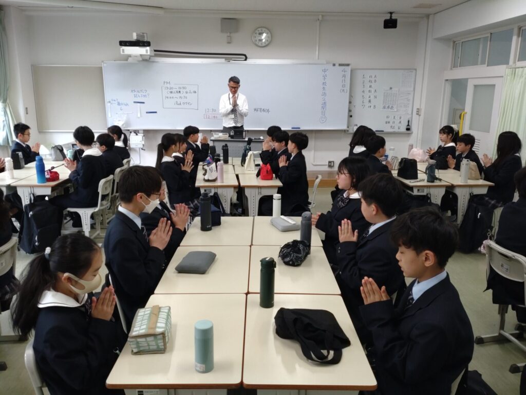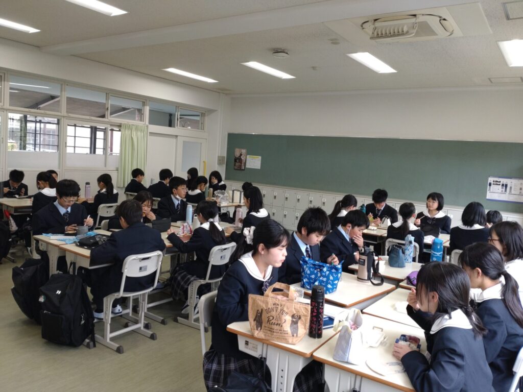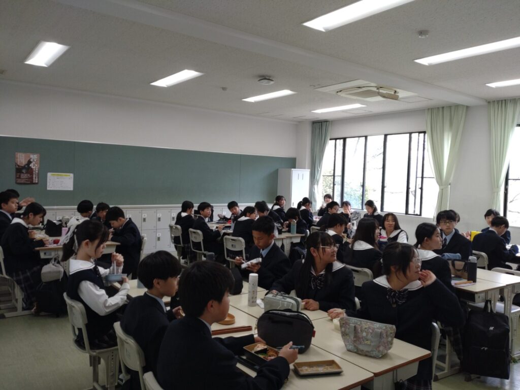 2026/04/14季節と風景 中1・初めての昼食 中学1年生は大型連休前まで教室でみんなでお弁当を食べます。 4月13日(月)が初日でした。 まだ和気あいあいという感じではありませんが、共通の話題で会話が弾む班もありました。 食堂体験まではクラス一緒にお昼を過ごします。