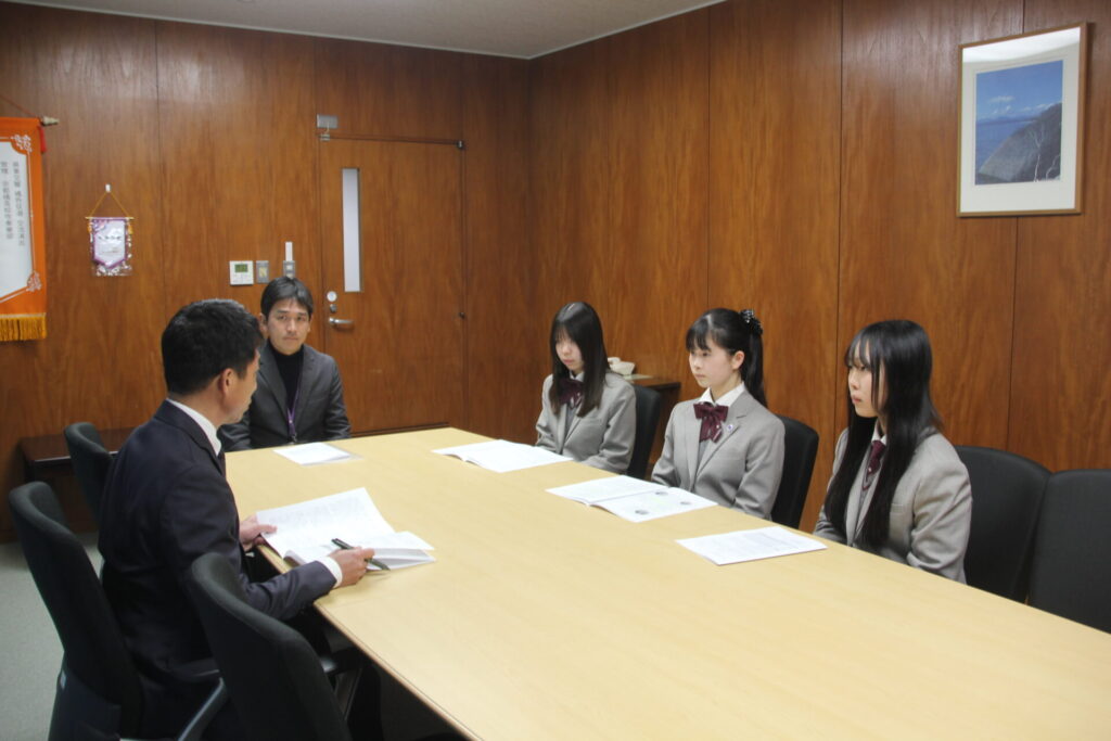 2026/01/29生徒会 生徒会・要求交渉 日々の学校生活をよりよくするため、生徒会からの要求交渉が1月26日(月)にありました。 全校生徒の声を聞き、生徒会でどうしたら改善されるかを考えたり調査したりしたものをまとめ、生徒指導部長に提出しました。回答は春頃を予定しています。